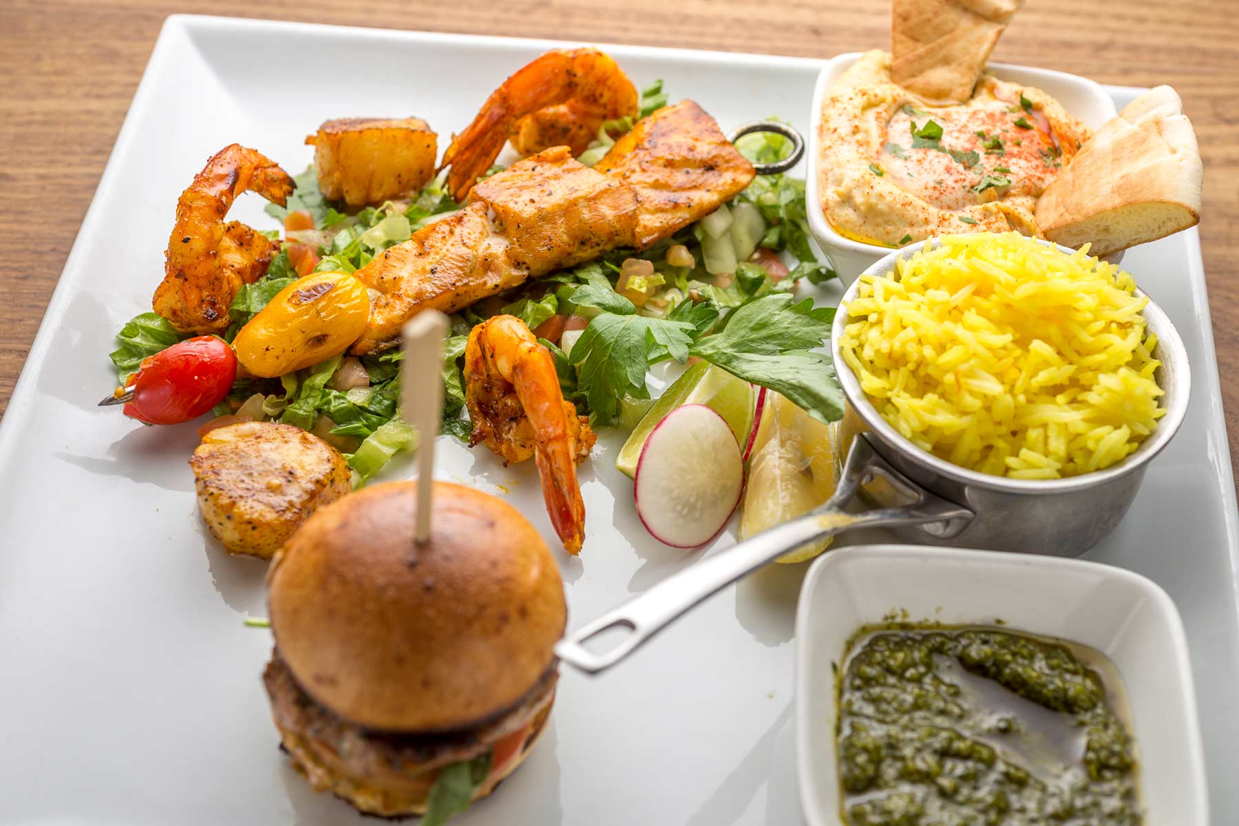 Brothers Alon and Jacob Cohen have named their restaurant after their mother. Their children and all of their cousins call her Mémé; French Moroccan for Grandma. When the Cohen family emigrated from Morocco to Israel, they brought with them their flair for hospitality and good food. Jacob’s menu creates a culinary trip around the Mediterranean using fresh ingredients and special spices still shipped directly from his mother, who still lives in Israel. Alon described it best; the flair at Mémé will spark a “party in your mouth.”